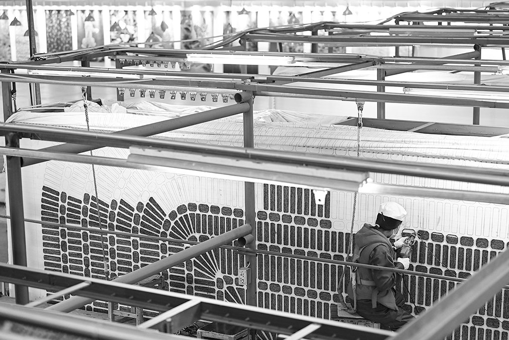 图为近日,一位女工在圣源地毯集团有限公司生产车间使用枪刺工艺制作地毯。李 贺 摄