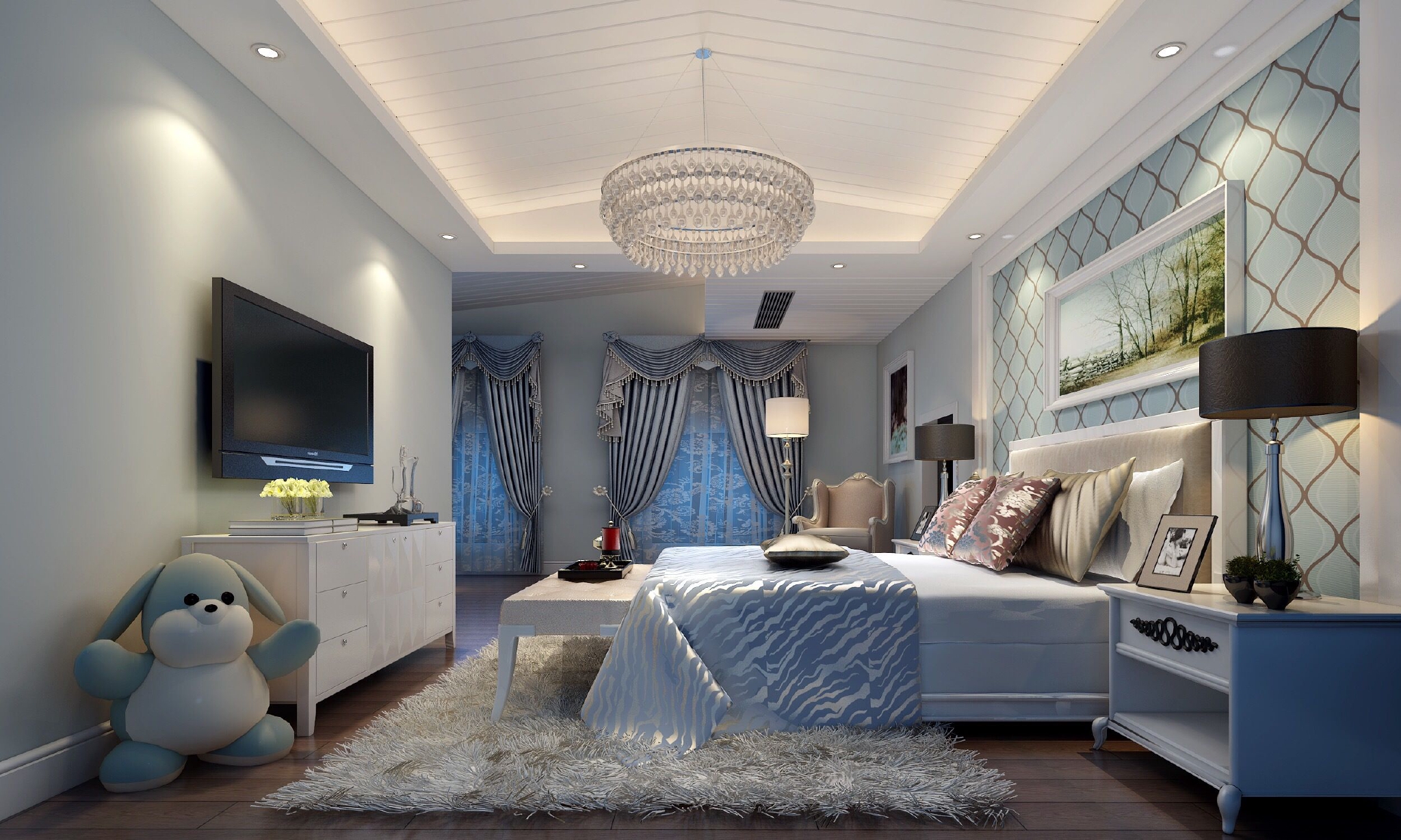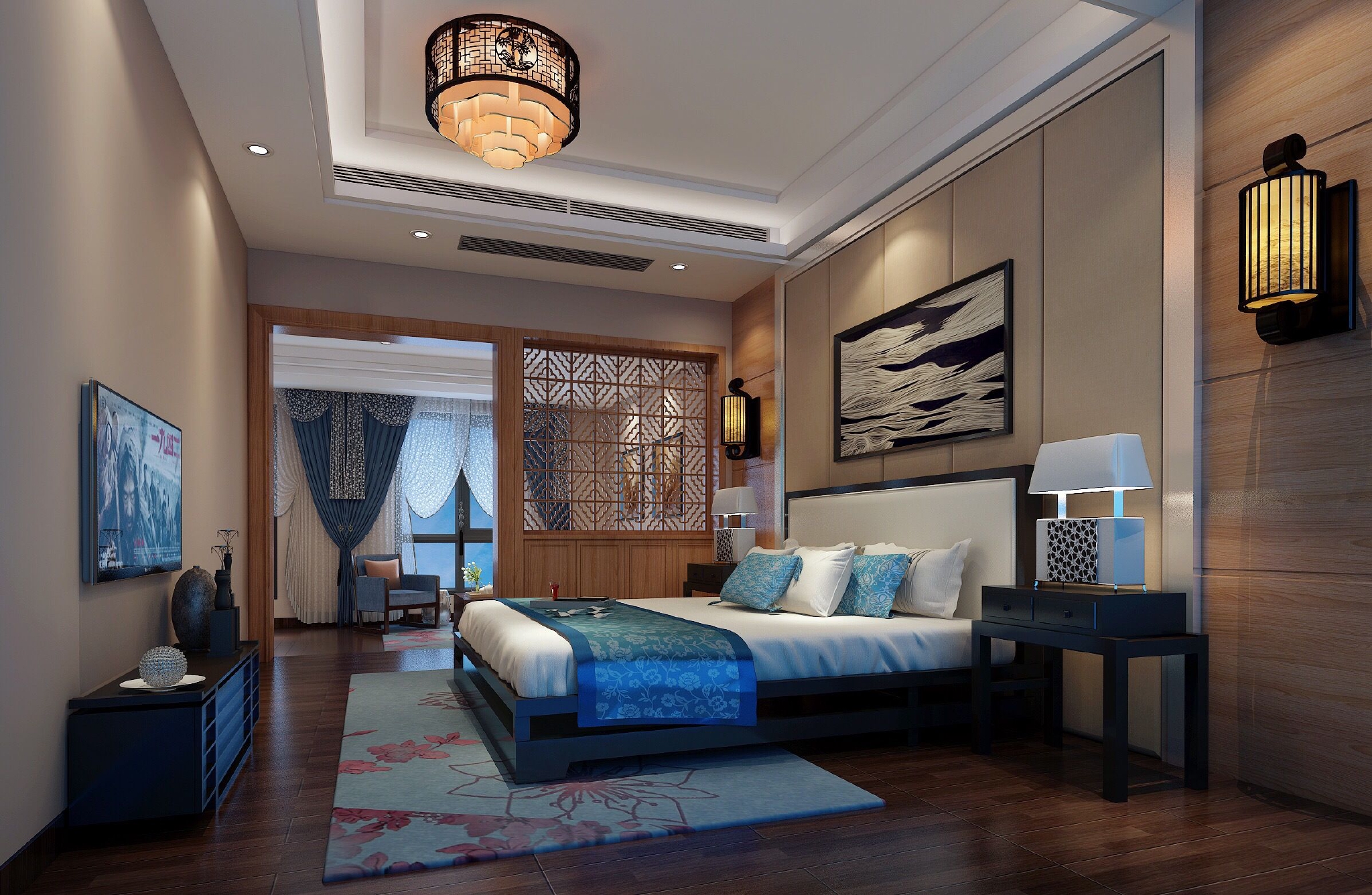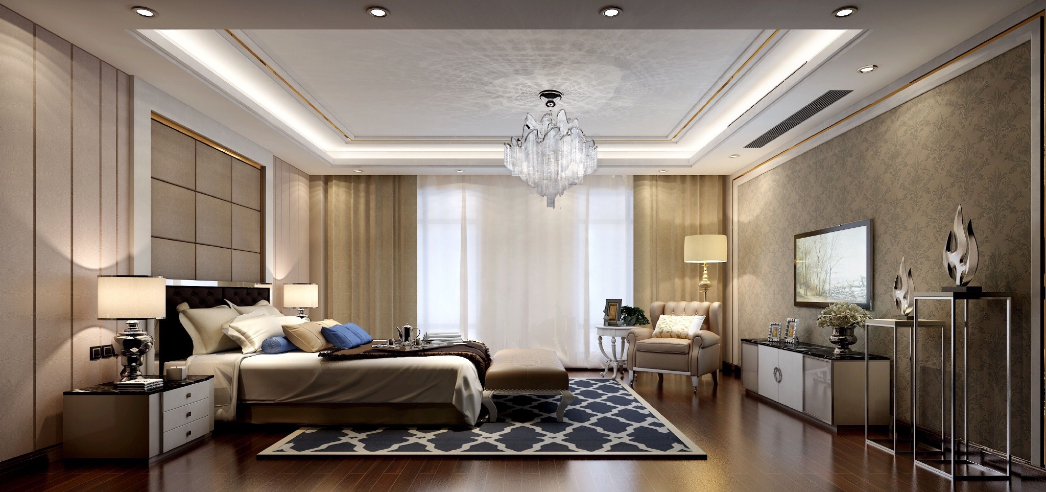 卧室以色彩融合为主,给人一种清新淡雅之感,配以灰色地毯,干练不失温暖。