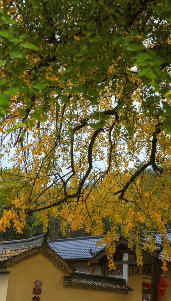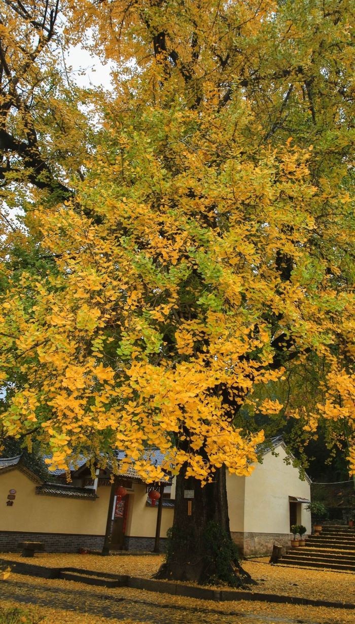 #信阳限定黄金暴雨# 万片金叶从千年古树飘落,铺成“金色地毯”